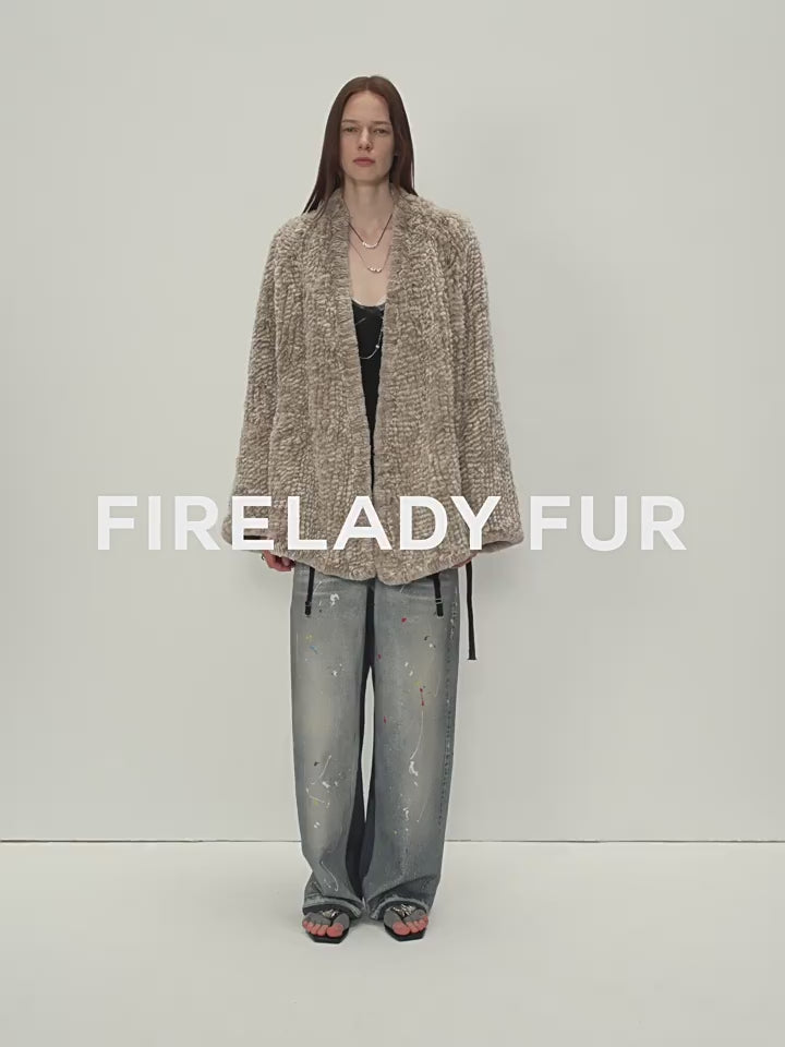 Loose-fitting two-tone gradient-dyed long woven Rex rabbit fur coat "Artistic Weaving"